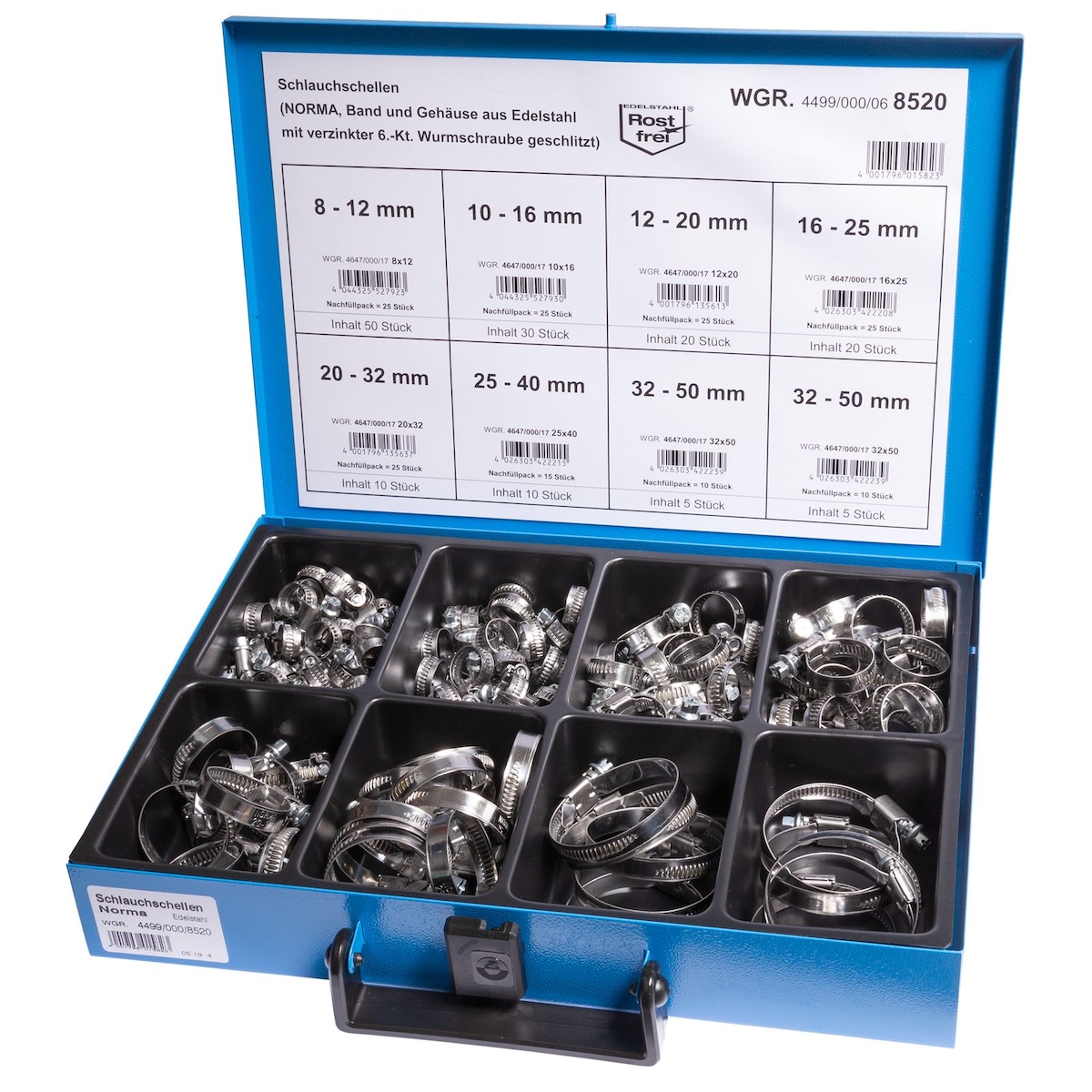 Dresselhaus Sortiment NORMA Schlauch-Schellen Band und Gehäuse Edelsahl 150-teilig