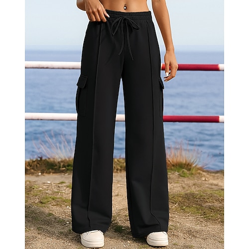 Per donna Pantaloni della tuta Chino Di tendenza Streetwear Lunghezza intera Vita normale Liscio Tasche comodo Morbido Comodo Media elasticità Esterno Strada Marrone Scuro Nero Blu Cachi Primavera