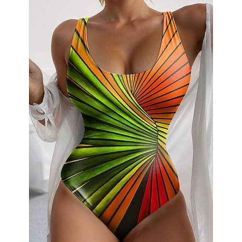 Costume da bagno intero da donna monokini snellente color block alto controllo della pancia vita alta slim senza schienale abbigliamento da spiaggia per vacanze grafica ombré vintage scollatura