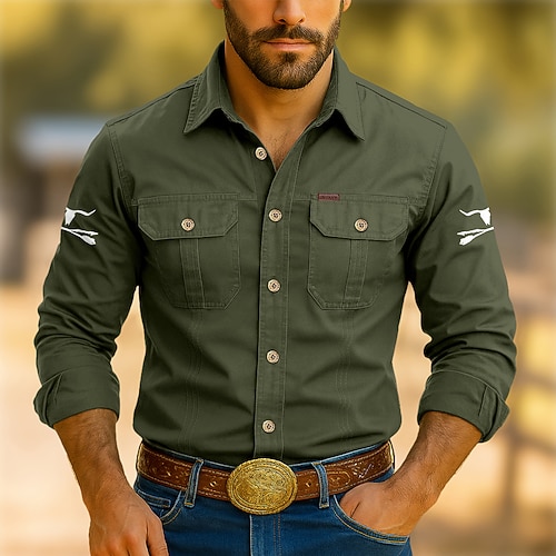 Per uomo Camicia da lavoro Camicia Western Camicia cargo Nero Verde militare Blu scuro Manica Lunga Stampa Mucca Collo ripiegato Sport all'Aperto Casuale Abbigliamento Casual Pantaloni Tattici