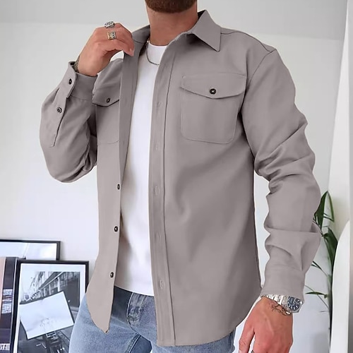 Per uomo Camicia Camicia casual Camicia di flanella Camicia con Bottoni Sopracamicia Nero Blu marino Blu Grigio chiaro Verde militare Manica Lunga Semplice Colletto Quotidiano Uscire Abbigliamento