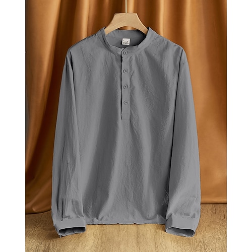 Per uomo Camicia Camicia di lino Camicia popover Camicia casual Camicia di cotone Semplice Vacanza Camicia hawaiana Nero Bianco Cachi Verde militare Manica Lunga Colletto alla coreana Primavera