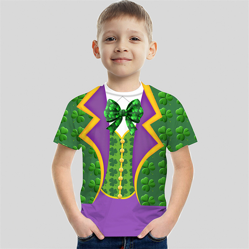 St. Patrick Boys 3D Graphic Four Leaf Clover T shirt Tee Short Sleeve Summer Spring Fashion Basic Kids 4-12 Years Crew Neck Outdoor Casual Daily Regular Fit