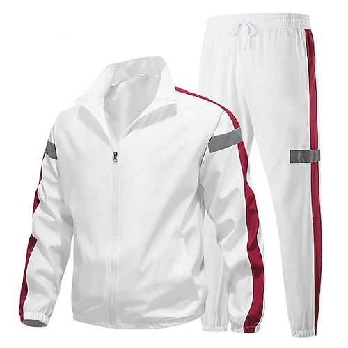 Per uomo Tuta da 2 pezzi Set di tute da ginnastica Abbigliamento sportivo Con zip Striscia riflettente Tinta unita Completo Abbigliamento Primavera Nero Bianco Palestra Allenamento Corsa Vita Alta