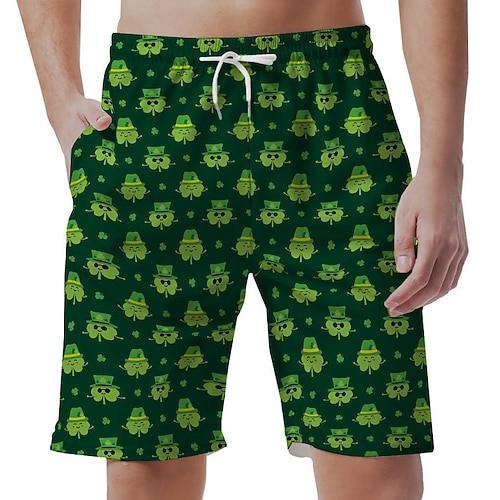 Festa di San Patrizio, pantaloncini da surf da uomo, pantaloncini da bagno, pantaloncini da bagno, pantaloncini estivi, pantaloncini da spiaggia, coulisse con fodera in rete, elastico in vita, stampe