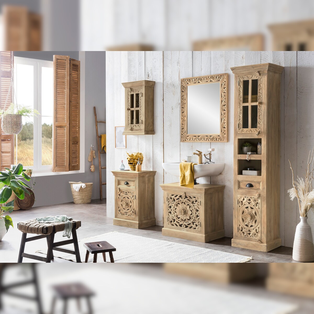 SIT Möbel Wand-Spiegel viereckig | Rahmen Mango-Holz natur | B 68 x T 3 x H 79 cm | 13789-01 | Serie LAKADEE