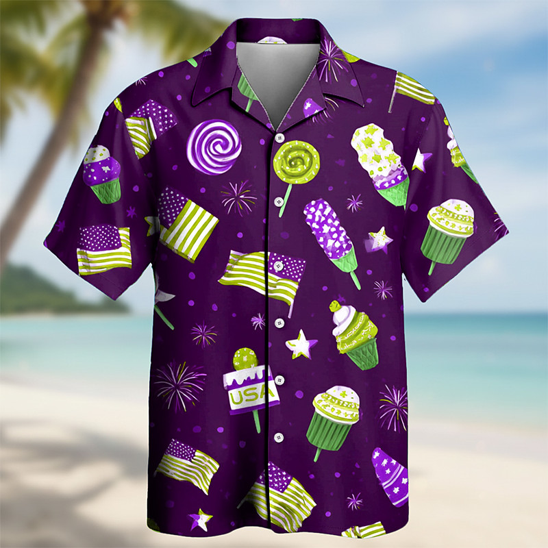 Men's Food US Flag America's 250th Anniversary Shirt Button Up Shirt Short Sleeve Fashion Casual Outdoor Holiday Summer Spring Turndown 3D Print Collared Shirts Dark Green Dark Blue Dark Purple