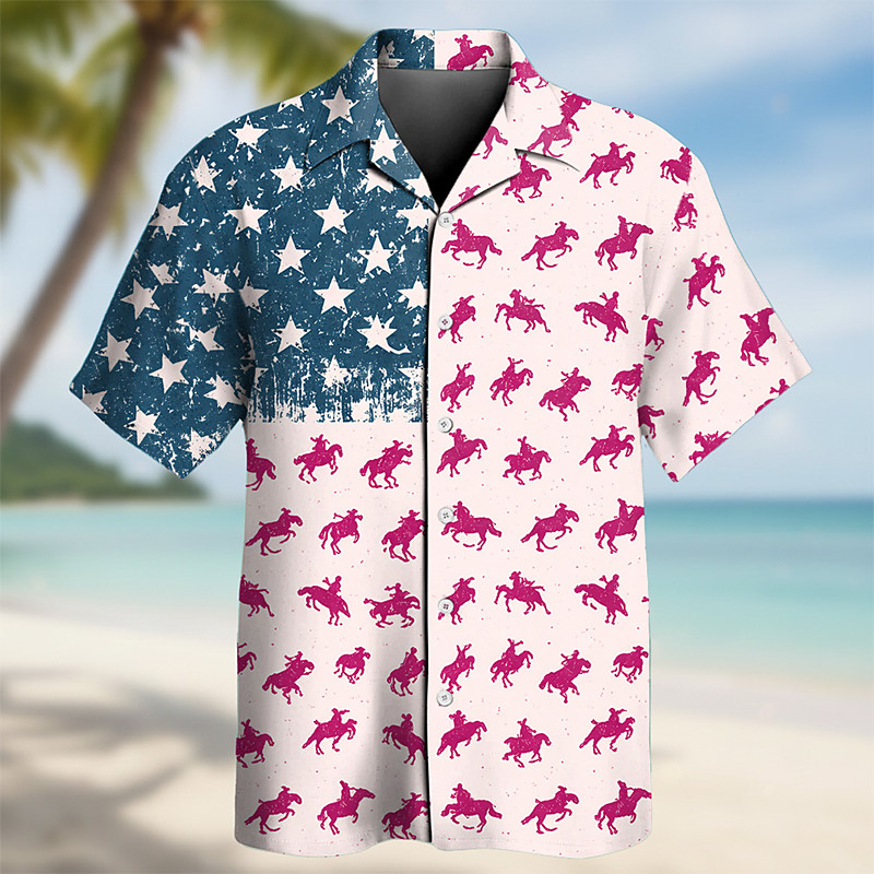 Men's US Flag Cowboy America's 250th Anniversary Shirt Button Up Shirt Short Sleeve Vintage Retro Outdoor Holiday Summer Spring Turndown 3D Print Collared Shirts Pink Beige