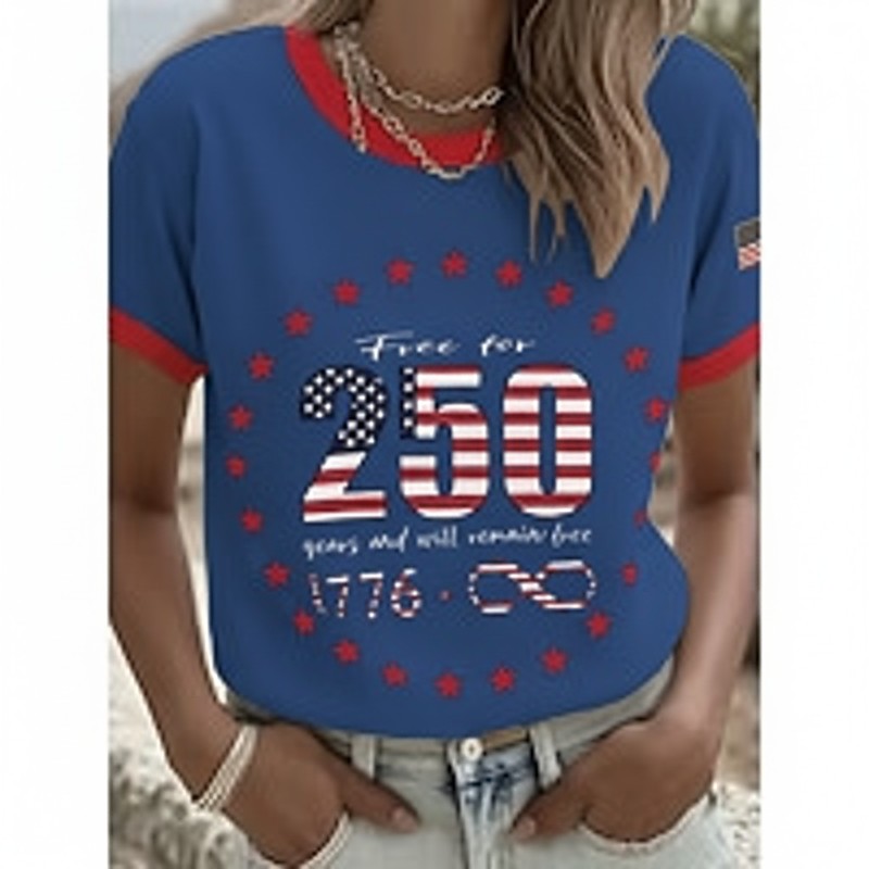 American 250th Women's T Shirt Graphic American Flag Independence Day Vintage Stylish Classic Short Sleeve Crew Neck V Neck Round Neck Regular Tops Daily Print off-white Summer Spring Fall