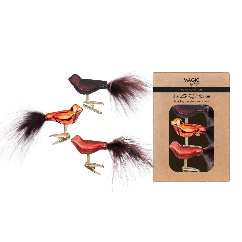 3 Glasvögel auf Clip Christbaumschmuck Weihnachtskugeln Weihnachtsbaum braun Mix