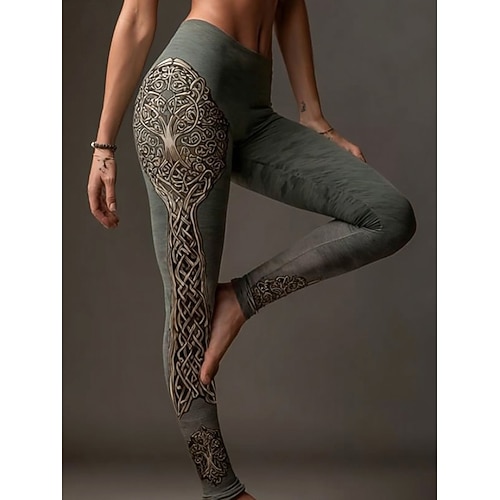 Leggings Boho Viking da donna Vintage Vacanza Stile Etnico Vintage Full Length Alta Vita Grafica Astratta Stampa 3D Asciugatura Rapida Traspirabilità Morbidi Elasticizzati Outdoor Vacanza