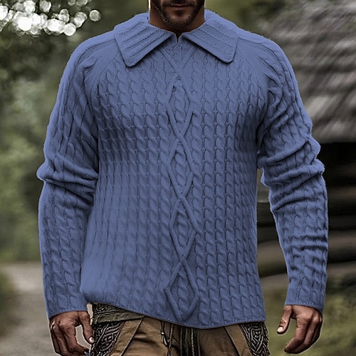 Per uomo Maglione Maglione a maglia Treccia Maglia Top Regolari Lavorato a maglia Semplice Bavero Moda Essenziale Vacanza Abbigliamento quotidiano Abbigliamento Autunno Inverno Vinaccia Nero S M L