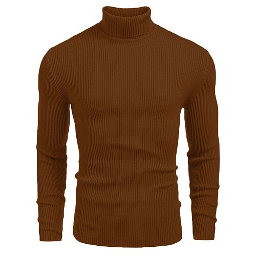 Per uomo Felpa Maglione A Coste Maglia Top Regolari Lavorato a maglia Slim Fit Semplice Dolcevita Maglieria Contemporaneo Casuale Abbigliamento quotidiano Abbigliamento Autunno Vinaccia Nero L XL 2XL