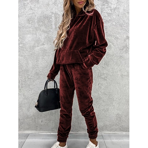 Per donna Moda Streetwear Felpa con Cappuccio Set di Pantaloni Bolero Top Manica Lunga Con Cappuccio Tinta unica All'aperto Casuale Quotidiano Nero Rosa Vino Autunno Vestibilità regolare