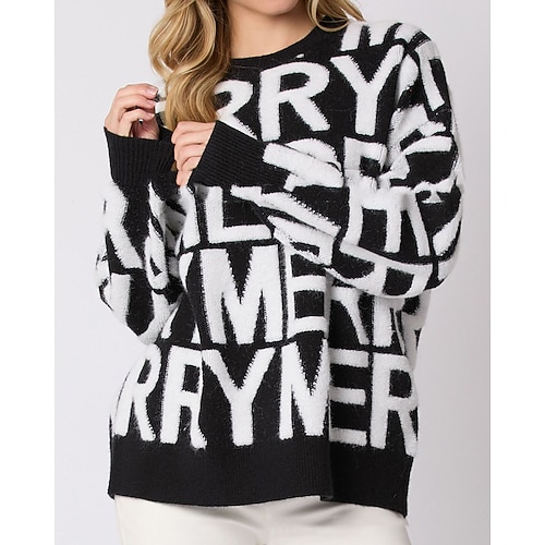 Per donna Maglione natalizio Fair Isle Felpa Maglione Moda Streetwear Casual Lettera Girocollo Lavorato a maglia Stampato Manica Lunga Top Regolari Maglia Natale Quotidiano Ferie Nero Rosa Autunno