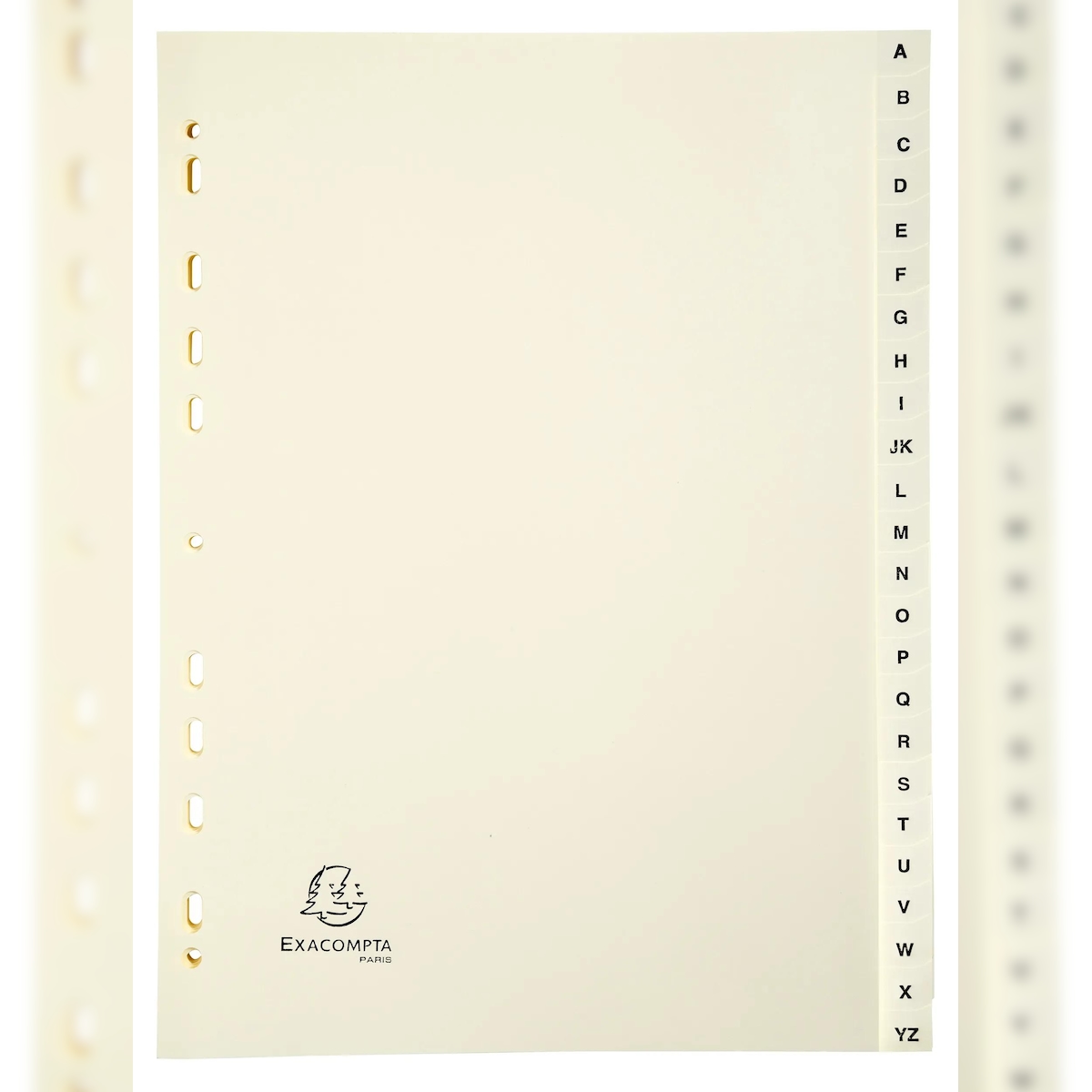 Exacompta 1124E 10x Register mit bedruckten Taben aus Karton 155g/qm, 24 Positionen Taben A-Z, für Format DIN A4 - Elfenbein