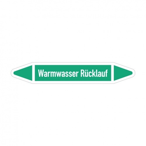 Aufkleber I RKZ-Etikett Warmwasser Rücklauf,DIN 2403,grün/weiß,f. Ø 40-60mm,218x37mm,5/Bogen