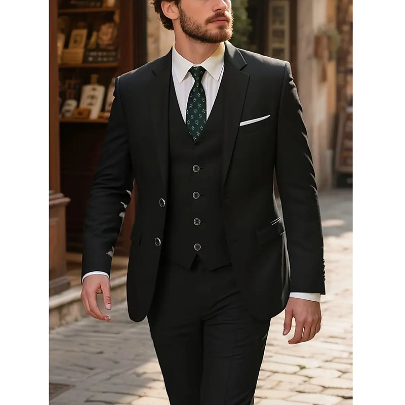 Men's Wedding Party Business Suits Notch Lapel Black Formal Solid Colored Tailored Fit 2 Piece Single Breasted One-button