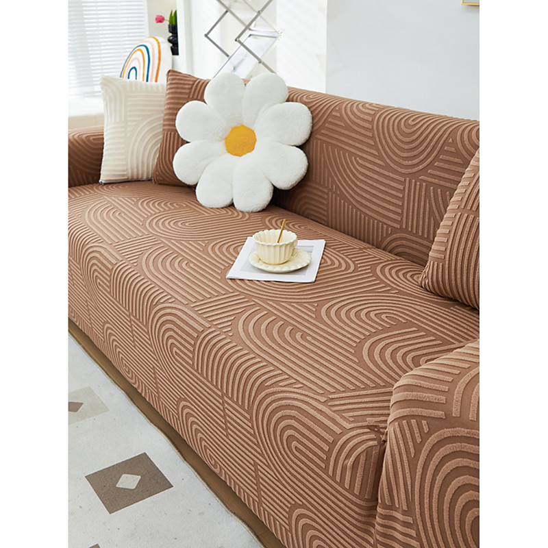 1 Piece Full Package Solid Color Bohemian Style Muxing Jacquard Sofa Cover Elastic Jacquard Sofa Cover Protecting The Sofa From Cat Claws Can Be Used All Year Round Equipped With Pillowcases
