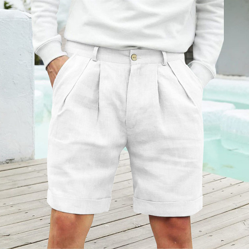Men's Linen Shorts Summer Shorts Beach Shorts Buttons Pocket Pleats Plain Comfort Breathable Short Holiday Vacation Beach Hawaiian Boho Black White