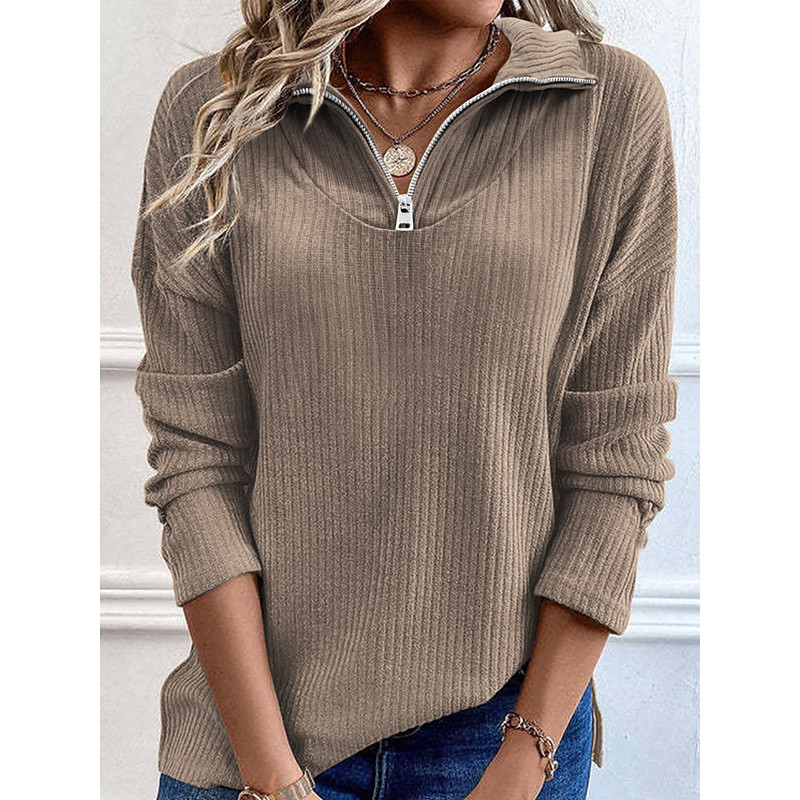 Women's Pullover Active Fashion Streetwear Plain Street Dailywear Casual Turtleneck Patchwork Zipper Long Sleeve Pink Blue Brown Fall Winter