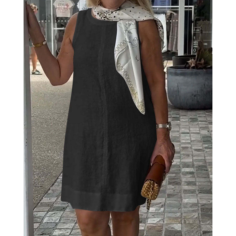 Women's Mini Dress Casual Dress Classic Modern Vacation Daily Holiday Regular Fit Plain Sleeveless Crew Neck Black White Khaki Summer