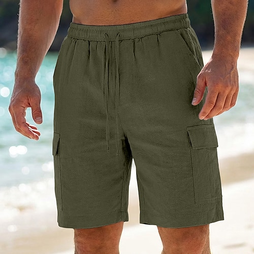 Per uomo Pantaloncini cargo Shorts Shorts di Lino Pantaloncini Estivi Shorts da Spiaggia Coulisse Elastico in vita Multi-tasche Semplice Tinta unita Corto All'aperto Spiaggia Vacanza Hawaiano Nero