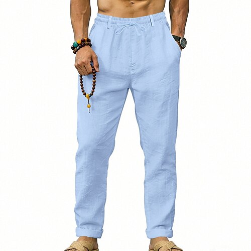 Per uomo Pantaloni di Lino Pantaloni Pantaloni casual Pantaloni Estivi Coulisse Elastico in vita Semplice Comodità Traspirante Lunghezza intera Casuale Quotidiano All'aperto Vacanza Moda Blu Nero