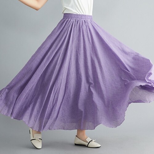 Per donna Gonna da vacanza Bohemien Vintage Casual Maxi Vita Alta Gonne Semplice Elastico in vita Fluido Elasticizzato Quotidiano Spiaggia Blu Rosa chiaro Rosa scuro Nero Estate Cotone Lino