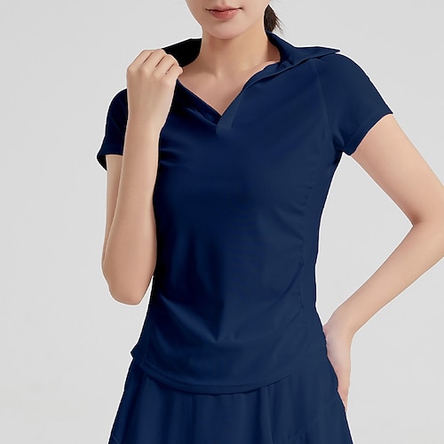Per donna Tinta unita Maglia atletica Polo da golf Canotta Maglia da tennis Manica Corta Elastico Traspirante Tennis Golf Pickleball Scollo a V Top Nero Bianco Rosa Abbigliamento da tennis