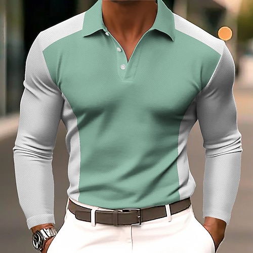 Herren Farbblock Polo Langarm Polo-Shirts Revers Business-Casual Outdoor Athleisure Alltagskleidung Knöpfe Frühling Herbst Blau Rote Marineblau