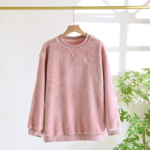 Per donna Pigiama felpato foderato in pile Felpa Pullover Pullover Felpe Lettera Caldo Streetwear Casual Manica Lunga Girocollo Top lunghi Casa Abbigliamento Quotidiano Casuale Stampato Giallo Rosa