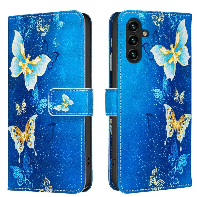 Samsung Galaxy A55 5G Plånboksfodral Konstläder Mönstertryck - Gyllene Fjärilar