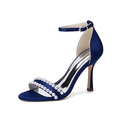 sandali da donna con tacco alto e cinturino alla caviglia in perle argentate, eleganti scarpe da sposa per matrimoni in città