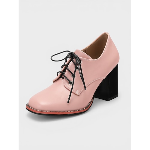 Scarpe Oxford da donna vintage marroni con tacco alto - classiche scarpe con tacco a blocco e punta a coda di rondine, allacciate e con dettagli brogue, perfette per l'ufficio, la scuola e tutti i