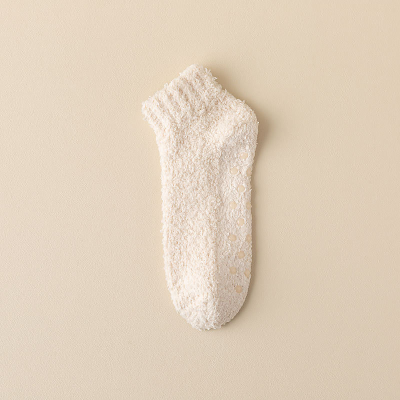 Women's Non-Shedding No-Show Socks, Solid Color Coral Fleece Thick Winter Floor Socks, Warm Home Socks with Silicone Anti-Slip Soles