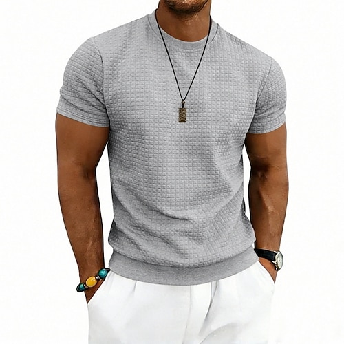 Per uomo Maglietta Waffle Maglietta Camicia a Maniche Corte Manica Corta Girocollo Estate Primavera Tinta unica Streetwear Elegante Sportivo Jacquard Quotidiano All'aperto Vacanza Bianco Nero Grigio