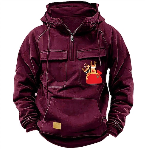 Per uomo Felpa con cappuccio Felpa con cappuccio e zip corta Nero Rosa Vino Blu Verde Con Cappuccio Ogni Coulisse Tasca Sport Outdoor Quotidiano Ferie Natale Streetwear Casual Primavera Autunno