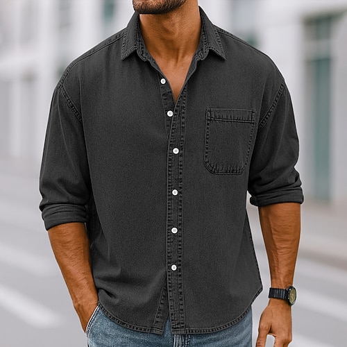 Per uomo Camicia Camicia casual Camicia vintage Camicia con Bottoni Nero Verde chiaro Vino Blu marino Blu Manica Lunga Semplice Bavero Casuale Uscire Tasca Abbigliamento Vintage Moda Retrò Vintage