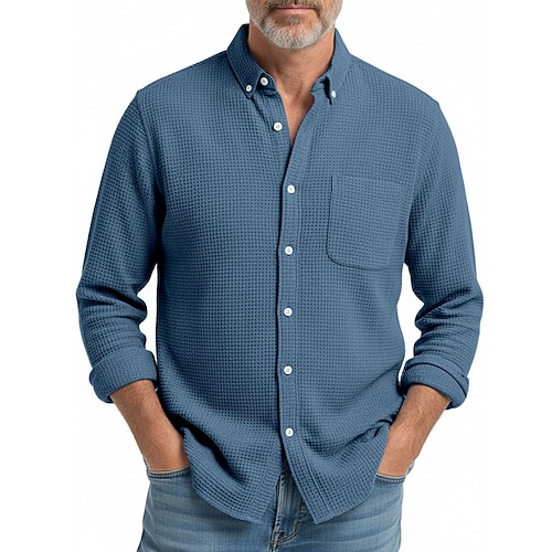 Per uomo Camicia Camicia a nido d'ape Camicia button-down Camicia casual Blu Rosa Vino Blu marino Manica Lunga Semplice Colletto italiano visibile Affari Quotidiano Abbigliamento Moda Moderno Casual
