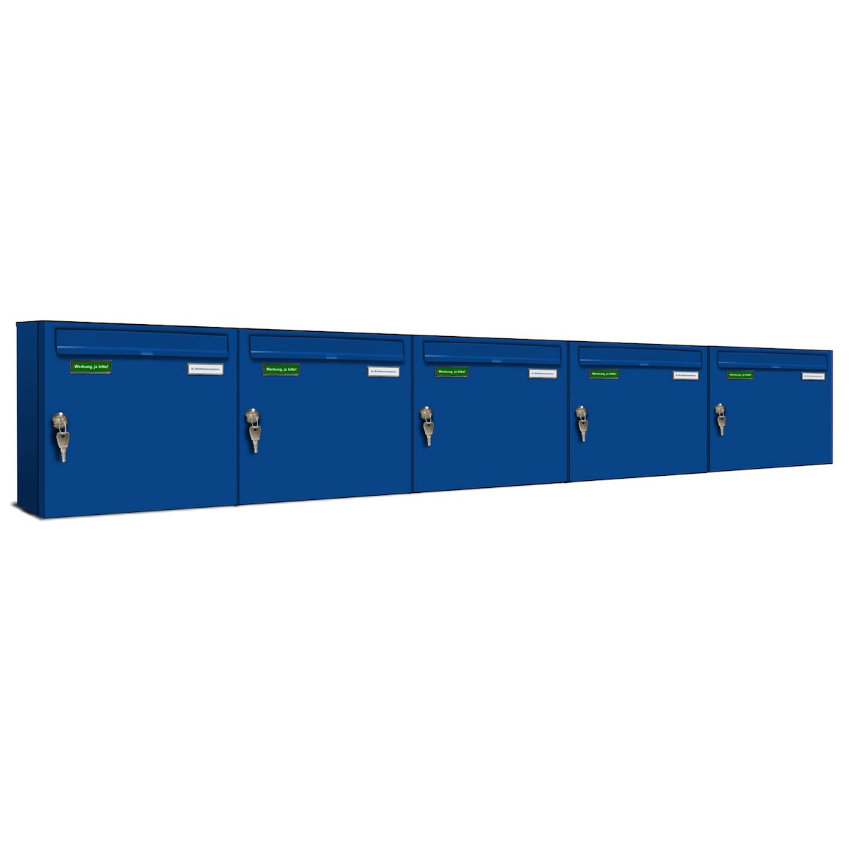AL Briefkastensysteme 5 x Basic Wand Briefkasten in RAL Farbe 5010 Enzian Blau für Post A4, wetterfest, Artikelnummer: 431P5EA5P5010