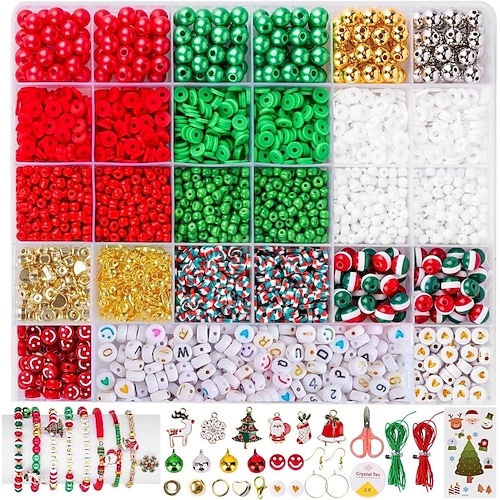 perline natalizie per la creazione di gioielli, ciondoli, perline di argilla per la creazione di bracciali e collane, artigianato fai da te, set di perline a tema festivo, kit di accessori fatti a