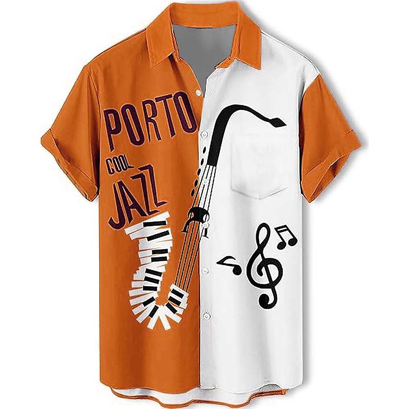 Men's Musical Notes Jazz Saxophone Shirt Summer Shirt Button Up Shirt Short Sleeve Fashion Casual Daily Music Festival Summer Spring Turndown 3D Print Collared Shirts Front One Pocket Blue Yellow