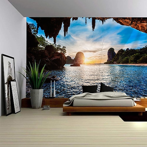 Arazzo da parete con roccia, decorazione artistica, coperta, tenda appesa, casa, camera da letto, soggiorno, decorazione, poliestere