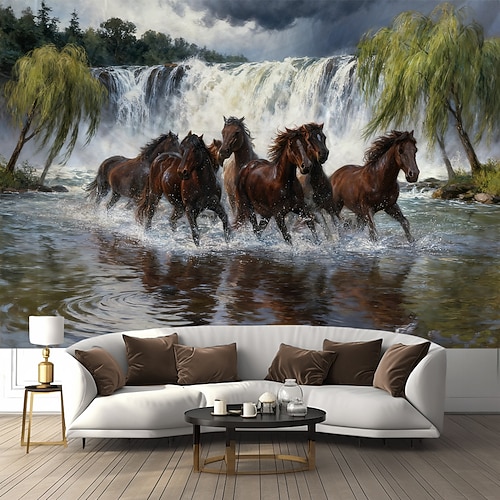 grandi cavalli che corrono nell'acqua arazzo murale arte fotografia sfondo coperta tenda per casa camera da letto soggiorno arredamento