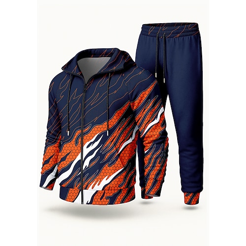 Per uomo Felpa con cappuccio Tuta da Ginnastica Tuta da 2 pezzi Coulisse Con zip Geometrico Completo Abbigliamento Autunno Arancione Lavoro All'aperto Viaggio Leggero Di tendenza Manica Lunga Sport