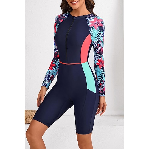 Per donna Top sottomuta Costume da bagno Costumi da bagno Patchwork Tropicale Con zip Gamba lunga fino al ginocchio Protezione UV Asciugatura Rapida Alta elasticità Manica Lunga Costume da Bagno