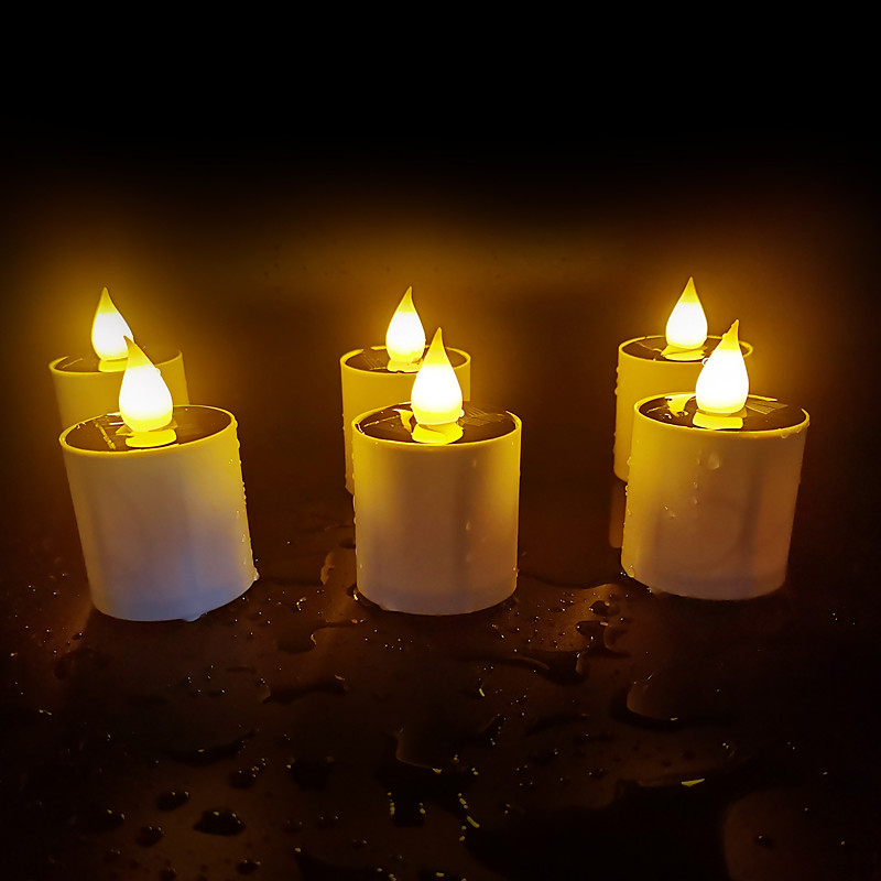 6 Pcs Outdoor Solar Waterproof Candle Light Courtyard Garden Indoor and Outdoor Halloween Christmas Wedding Party Festive Atmosphere Decorative Light