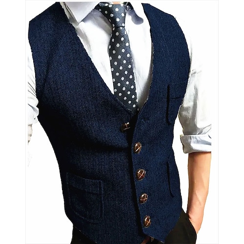 Per uomo Gilet in tweed Gilet Formale Matrimonio Vacanza Affari Punk Vintage Primavera Autunno Tasca Bottoni Poliestere Confortevole Spina di Pesce Monopetto Scollo a V Vestibilità aderente Nero Vino