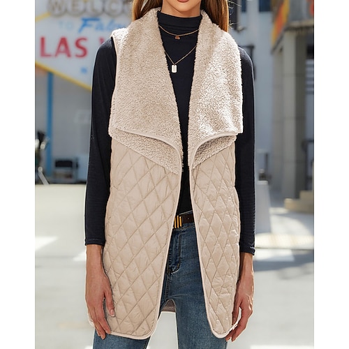 Per donna Cappotto Invernale Gilet in pile Gilet Caldo Confortevole Patchwork Tasca Elegante Moda Casual Tinta unica Vacanza Streetwear Casuale Abbigliamento quotidiano Lungo Collo ripiegato